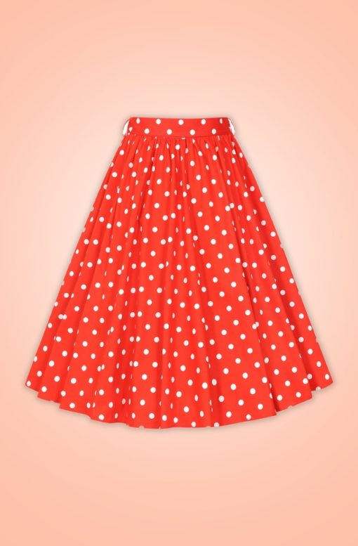 Jupe swing avec ceinture style retro, rouge à poids blancs, Hearts and Roses – Image 4
