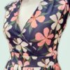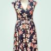 Robe retro, décolleté V cache coeur, bleue marine à fleurs, Lady Vintage – Image 2