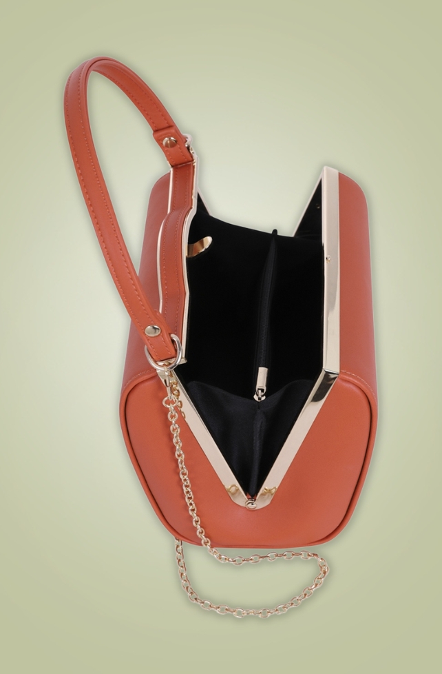 sac vintage retro orange doré main bandoulière rigide 40 50 années 50s 40s fourties fifties rectangle rectangulaire collectif clothing